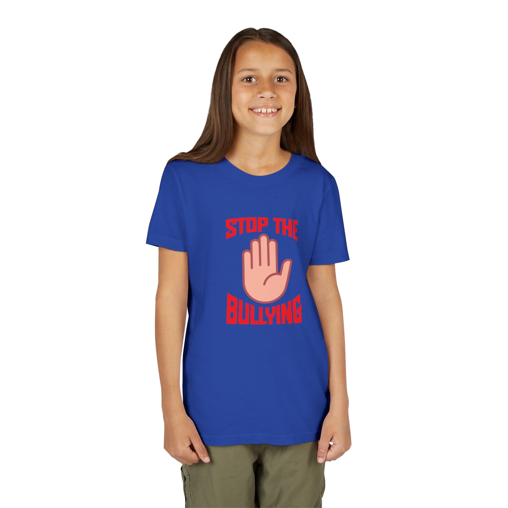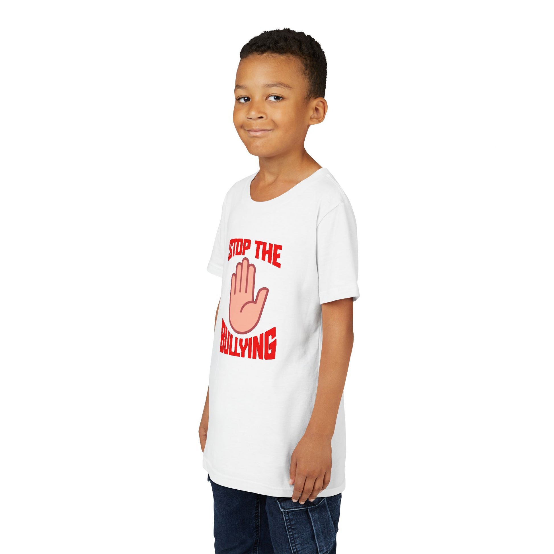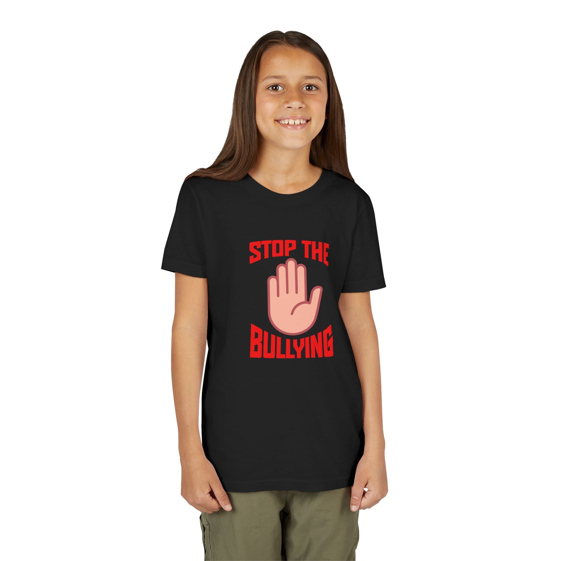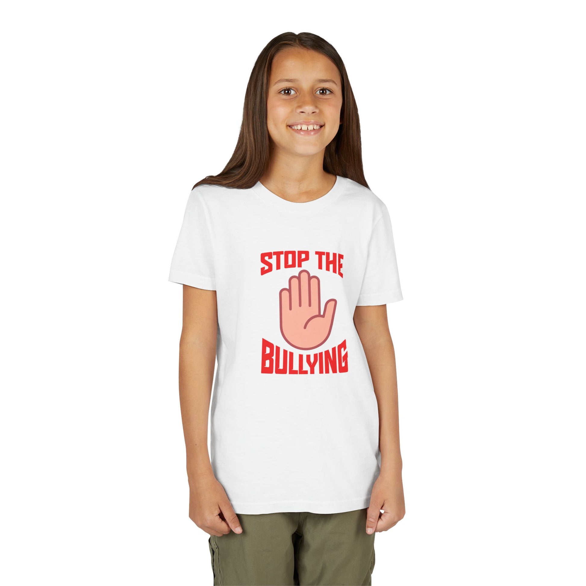 The Youth Short Sleeve Tee brings a powerful message to life with its bold "Stop the Bullying" design. Its lightweight and soft fabric ensures maximum comfort, making it a favorite for kids on the go. This stylish tee promotes awareness and solidarity, perfect for school events, community campaigns, or casual outings. Ideal for children who are advocates for kindness, it's a great choice for awareness days or anti-bullying rallies. Stylish and impactful, this shirt can easily be paired with jeans or shorts for a laid-back day or worn during special observances such as World Kindness Day or Anti-Bullying Week.